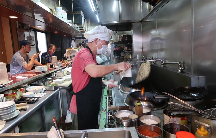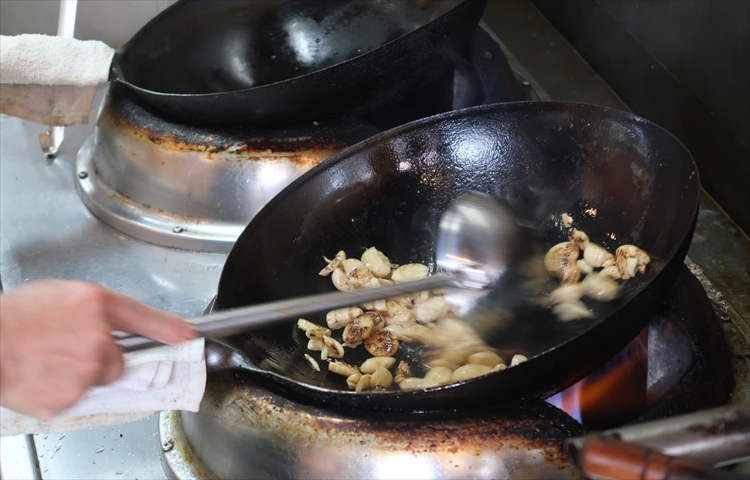 ▲お米や具材の前にまずはニンニクだけを炒めます。ニンニクの香りが店全体に広がって涎が止まりません!