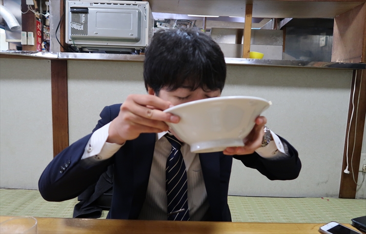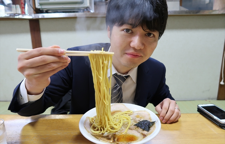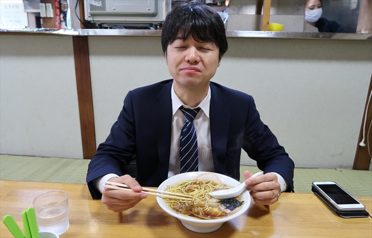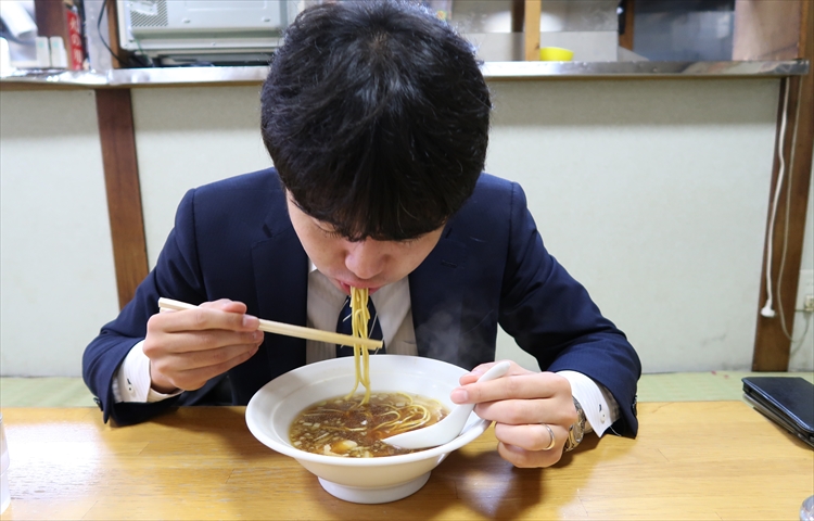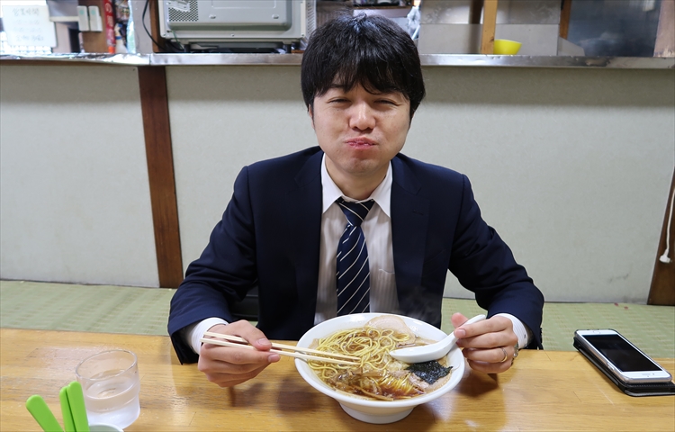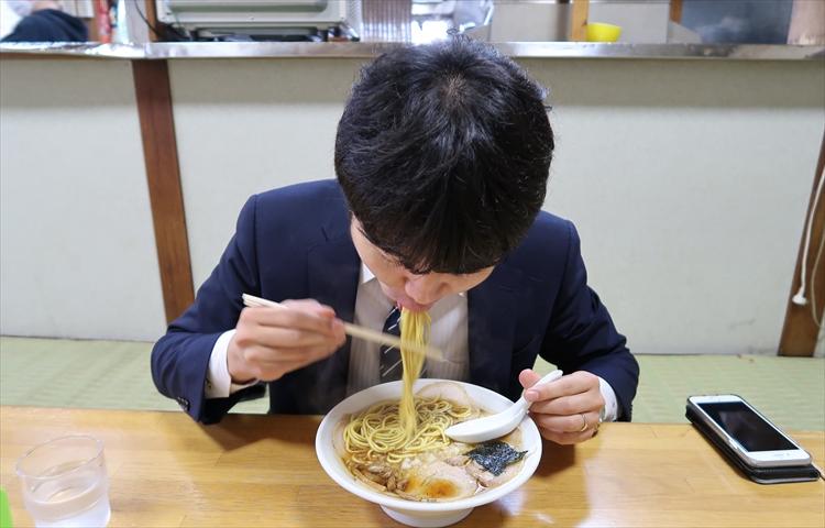 ▲美味しい…幸せだなぁ…。ぼく、ラーメンを食べている時が一番幸せなんだ…。