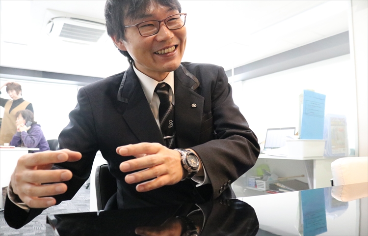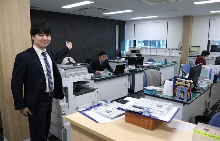 ▲東京営業所で採用業務などを担っている松葉さん。柔和な表情で、とても素敵なジェントルマン!