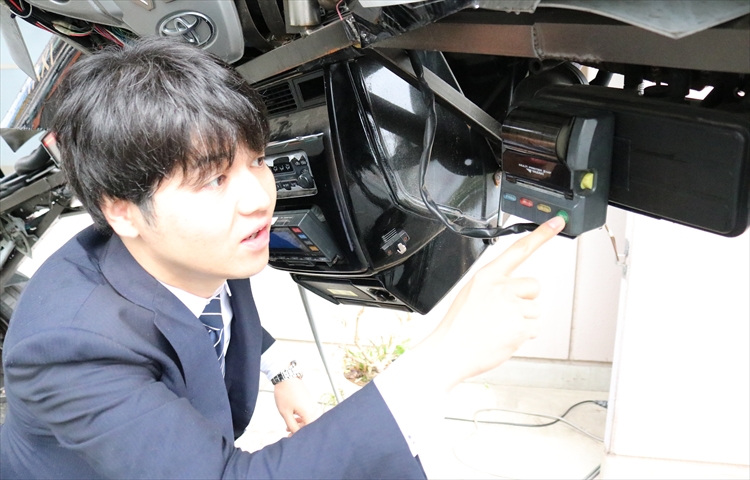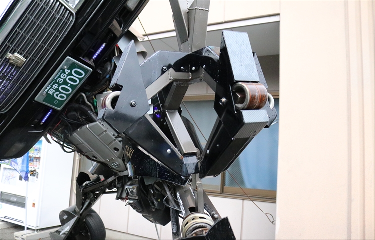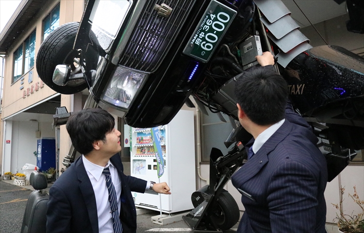 これは、実際のタクシーの部品を使って、自社の整備工場で製作したロボットタクシーなんです。