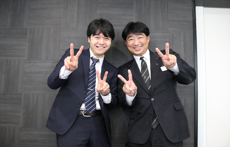 ▲最後に2人で、“転職、大・成・功!”のダブルピース。「自分のキャラではないんですが…」と