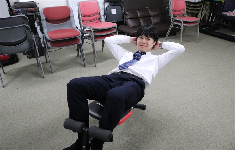 ▲ロッカールームに備えてある腹筋マシーンで気合いを入れ直し!!