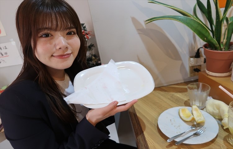 ▲トーストもフルーツサンドも綺麗に完食しました!!ごちそうさまでした!!お腹も満たされたので、気合を入れて取材に向かいたいと思います!!