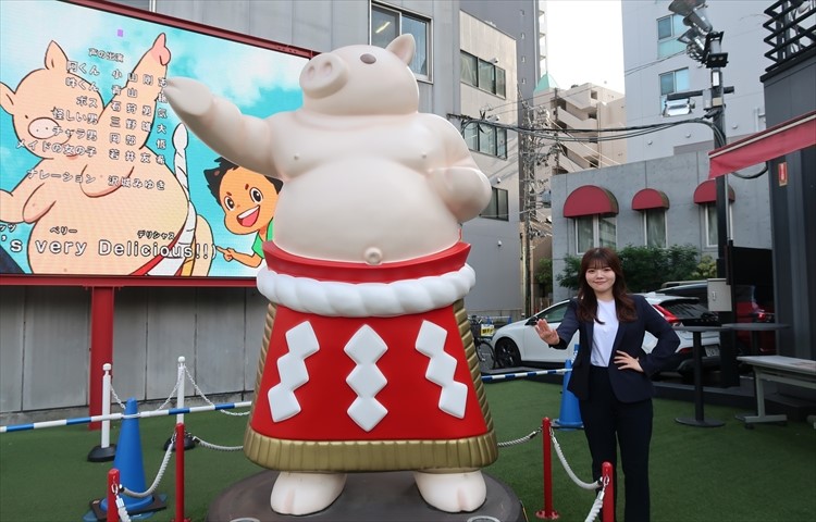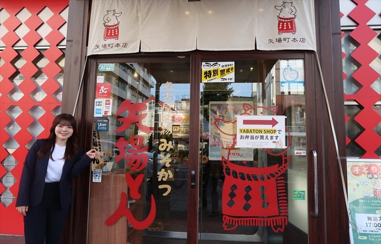 ▲やってきました!本店の横には、矢場とんキャラクターの『ぶーちゃん』が!!とてもSNS映えするスポットで記念写真☆