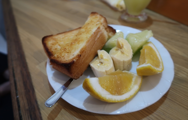 そう、ニワフルーツさんではモーニングにトーストを注文するとフルーツが付いてくるんです!この日は、バナナとオレンジとメロンでした!